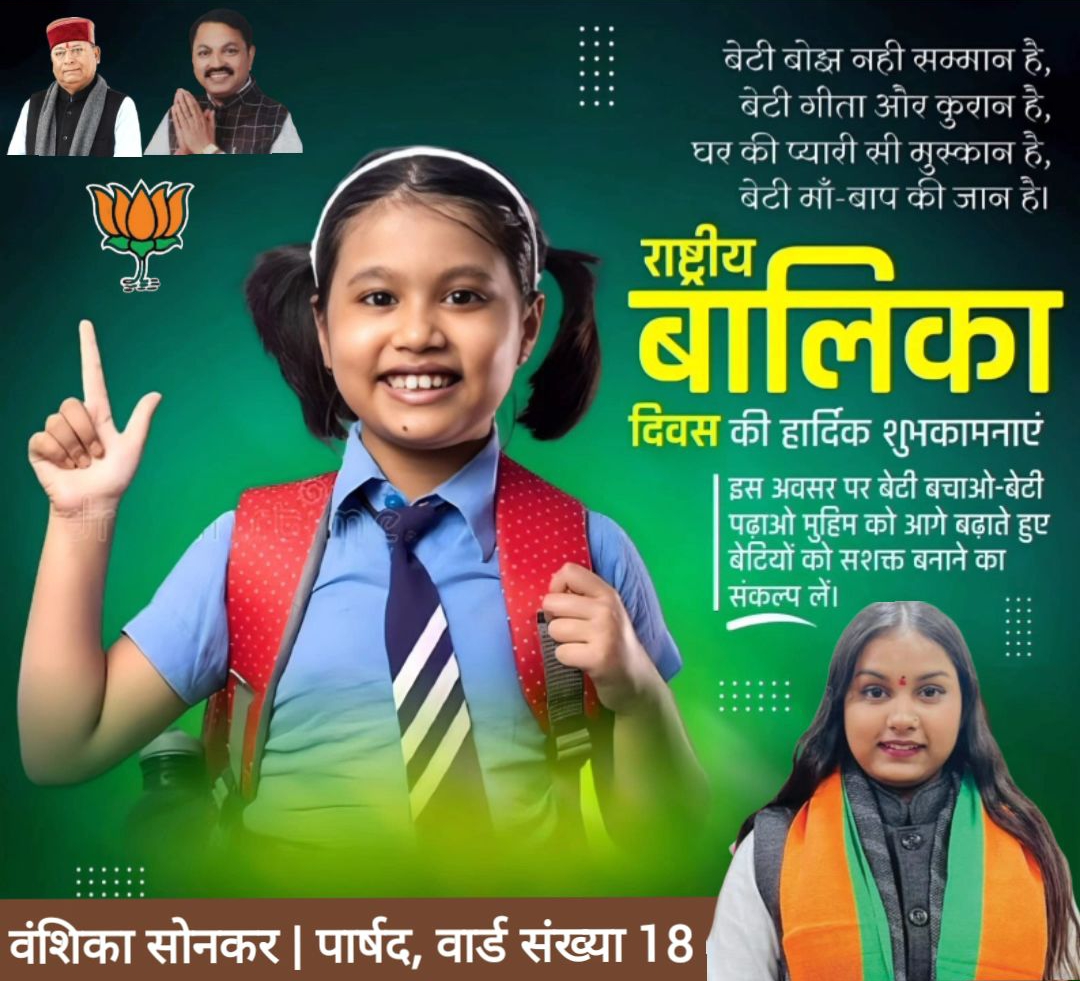 देहरादून। युवा भाजपा नेत्री, प्रसिद्ध समाजसेवी एवं वार्ड संख्या 18 इंदिरा कॉलोनी की नगर निगम पार्षद वंशिका सोनकर ने ‘राष्ट्रीय बालिका दिवस’ के अवसर पर समस्त देशवासियों को हार्दिक बधाई एवं शुभकामनाएं दी हैं।